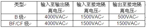 電源的隔離電壓根據類型評級的不同而有所差異。