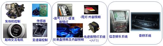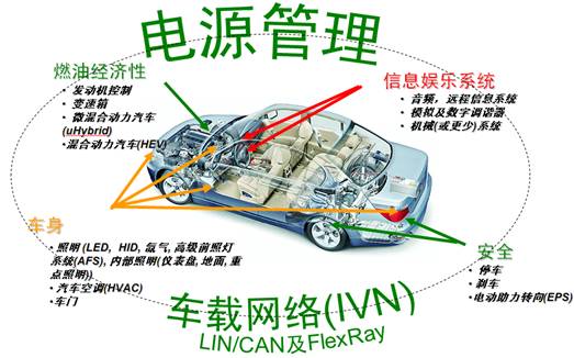 如今,汽車大趨勢正在推動著半導(dǎo)體成分的升高。主要推動因素包括:動力系統(tǒng)重點應(yīng)用,如提升汽車能效及將清潔能源技術(shù)用于汽車、智能電動汽車電源管理、高能效變速箱的使用;車身重點應(yīng)用,如網(wǎng)絡(luò)、采用先進照明及LED照明;安全/底盤重點應(yīng)用,如避免碰撞、動力制動;信息娛樂系統(tǒng)重點應(yīng)用,如駕駛?cè)诵畔ⅰ⒉迦朐O(shè)備/充電;新興市場,包括重利用在成熟市場獲得驗證的架構(gòu)來符合汽車定價要求,雖然廉價汽車的半導(dǎo)體成分較低,但用量極大。