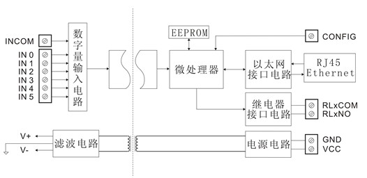 6路數(shù)字量輸入隔離變送6路繼電器與RJ45信號(hào)