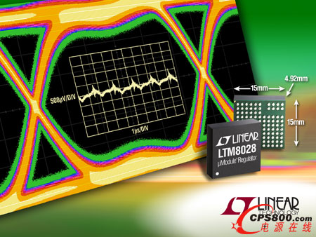 照片說明:1mV 輸出紋波、5A 降壓型 µModule 穩壓器可在高速收發器和數據轉換器應用中降低誤碼率