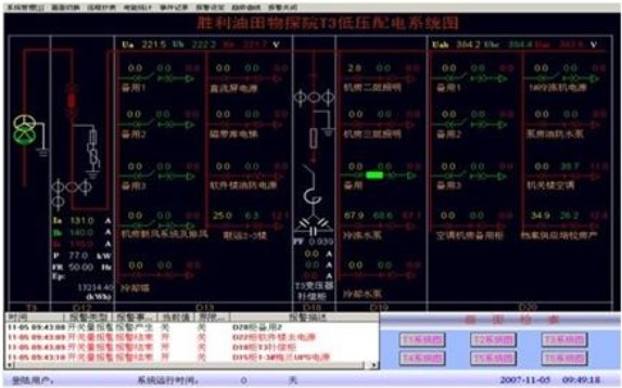 勝利油田物探院配電室于1992年建成投產(chǎn),已安全運(yùn)行16年,配電系統(tǒng)分為高、低壓兩大部分,高壓部分有聊城甲線和淄博甲線兩條10KV進(jìn)線,有6臺1250KVA有載調(diào)壓變壓器。物探院屬于重要電力負(fù)荷用戶,主要包括網(wǎng)絡(luò)二樓處理機(jī)房機(jī)群及其配套用電設(shè)備;網(wǎng)絡(luò)三樓解釋機(jī)房、局域網(wǎng)服務(wù)器及其配套用電設(shè)備、局信息中心ERP機(jī)房計(jì)算機(jī)及其配套用電設(shè)備;綜合樓處理和解釋機(jī)房用電設(shè)備;制冷機(jī)組及其配套用電設(shè)備以及全院的生產(chǎn),生活用電。