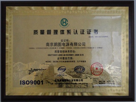 南京鵬圖電源有限公司近年來不斷探索新產品的領域,為加強強化品質管理,提高企業效益;增強客戶信心,擴大市場份額;獲得了國際貿易綠卡——“通行證”,消除了國際貿易壁壘;節省了第二方審核的精力和費用;在產品品質競爭中永遠立于不敗之地,有利于國際間的經濟合作和技術交流;強化企業內部管理,穩定經營運作,減少因員工辭工造成的技術或質量波動;提高企業形象,公司申請ISO9001質量管理認證,經第三方北京海德國際認證有限公司服務于2012.12.31正式取得ISO9001質量管理體系認證。
