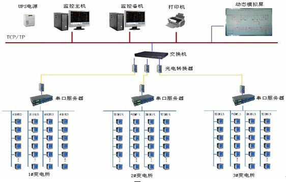 主要功能為一次主接線圖界面顯示;事件記錄,系統(tǒng)運(yùn)行異常監(jiān)測(cè);故障報(bào)警及操作記錄;電能報(bào)表查詢與打印;系統(tǒng)負(fù)荷查詢、用戶權(quán)限管理等主要功能;遙測(cè)信息報(bào)表查詢,高桿燈遠(yuǎn)程控制,斷路器分合閘狀態(tài)指示等。