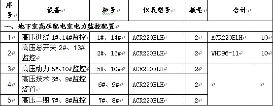 根據上海東方電視臺原有配電系統的現有情況和用戶需求分析,確定需要改造的配電回路,并進行合理的儀表選型,如下表所示(部分):