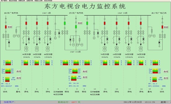 在世博會前上海東方電視臺配電系統基本還是使用90年代初期建臺時的設備,配電柜中安裝的儀表都是機械式電度表、電流指針表和電壓指針表。配電模擬屏為靜態式,各配出回路狀態靠人工手動調節。整個配電網絡的運行狀態和參數基本上是人工定時檢查抄錄模式,配電故障的可預見性差,事故后的原因追溯分析比較困難。這些情況與上海國際化大都市、東方臺在國民經濟和生活中的重要地位以及配電系統智能化的趨勢都是極不匹配的。為了確保上海世博會期間東方電視臺電力的安全可靠供給,電視節目的可靠轉播,對臺內原有老配電系統的升級改造變的勢在必行。通過電視臺的公開招標,安科瑞電氣以其穩定可靠的Acrel-2000電力監控系統解決方案成功中標。