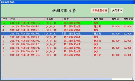 UPS變電所配出回路都為單項回路,只需要采集單項電流參數,電流參數的可查詢時間間隔需小于5分鐘,各回路要求能夠獨立設置電流上限報警參數,當某個回路電流越限時主機要彈出報警窗口顯示報警回路名稱、報警類型、報警數值等信息,主機的音箱也要發出報警聲音,并且報警聲音可以人為設置打開或關閉;對于報警事件具有存儲、查詢和打印的功能,至少可以查詢2年以內的報警記錄。