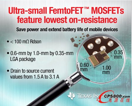 日前,德州儀器 (TI) 宣布面向智能手機(jī)與平板電腦等空間有限手持應(yīng)用推出業(yè)界最小型低導(dǎo)通電阻 MOSFET。該最新系列 FemtoFET™ MOSFET 晶體管采用超小型封裝,支持不足 100 毫歐的導(dǎo)通電阻。