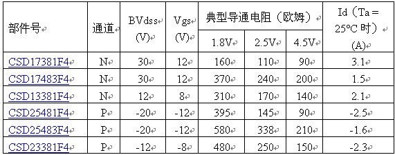 FemtoFET MOSFET 歸屬 TI NexFET 功率 MOSFET 產(chǎn)品系列,該系列還包括適用于手機(jī)等便攜式應(yīng)用的 CSD25213W10 P 通道器件以及 CSD13303W1015 N 通道器件等。TI 提供 LP5907 大電流低壓降 (LDO) 線性穩(wěn)壓器以及 TPS65090 前端電源管理單元 (PMU) 等各種系列的電源管理產(chǎn)品,可為手持應(yīng)用節(jié)省板級(jí)空間,降低功耗。