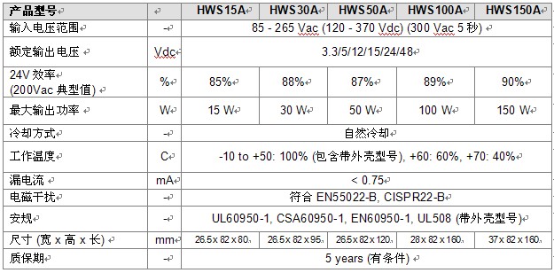主要數(shù)據(jù):HWS-A系列(15,30,50,100,150W)