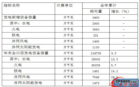 據統計,2013年全國發電裝機實現平穩較快發展,全年新增發電裝機9400萬千瓦,其中,水電新增2993萬千瓦,火電3650萬千瓦,核電221萬千瓦,并網風電1406萬千瓦,并網太陽能發電1130萬千瓦。