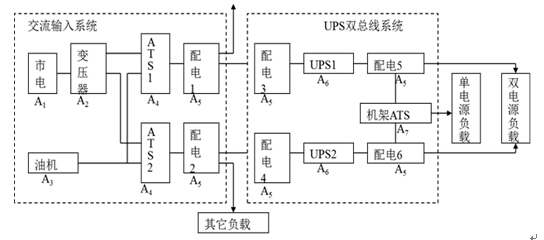 第四,方案級。通過優化系統設計,使供電系統運行可靠穩定,并且具備容錯能力,整個供電路徑無單點故障點。圖1展示了一個無單點故障的冗余系統架構圖。該方案由兩套系統組成,在每套系統中,A4環節做到輸入冗錯,A5環節做到雙回路互為備份,A6使用模塊化UPS或者并機, A7為單電源負載提供雙路保障,如果有條件A1和A2環節采用雙路市電輸入,單供電系統做到可靠冗余設計,然后方案采用2N容錯設計,基本做到無單點故障點和在線維護。