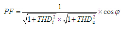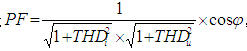 。從該式可以看出,當(dāng)電流、電壓發(fā)生畸變時,其功率因數(shù)會隨著減小。