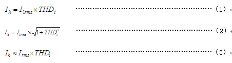 為全波電流有效值; 總諧波電流畸變率。由于實際測量時全波電流是比較容易測量和觀察的,而且在計算諧波電流時,用全波電流計算和基波電流計算差別不大(見式(3)),因此可以用全波電流進(jìn)行估算。