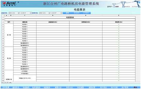 1.5 電能管理:綜合的電能統計報表功能,包含系統中24只低壓電力儀表所監測回路的用電量,可以根據需求進行不同時間段內的用電量查詢。