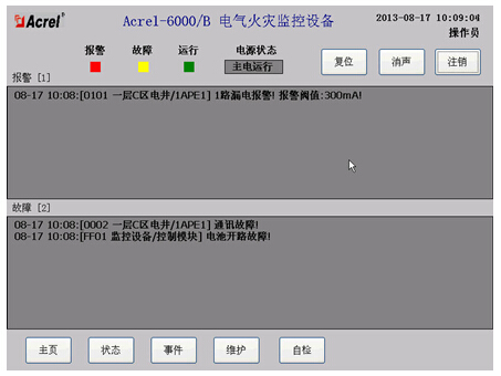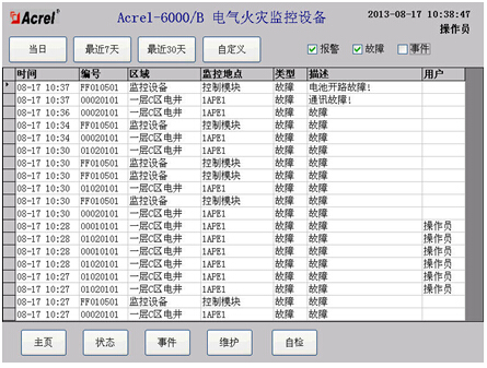 Acrel-6000電氣火災監控系統是本公司自主研發的用于接收剩余電流式電氣火災探測器等現場設備信號,以實現對被保護電氣線路的報警、監視、控制、管理的運行于計算機的工業級硬件/軟件系統。本系統應用于大型商場、生活小區、生產基礎、辦公大樓、商場酒店等區域的消防控制中心,對分散在建筑內的探測器進行遙測、遙調、遙控、遙信,方便實現監控與管理。本系統采用標準的Modbus現場總線將具有通信功能的探測器相互連接起來,當現場保護線路中的被探測參數超過報警設定值時,能發出報警信號、控制信號,能指示報警部位并保存報警信息。