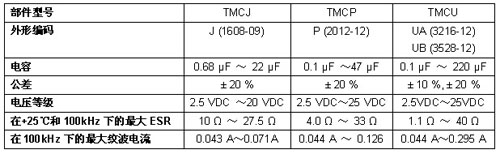 TMCJ、TMCP和TMCU的小封裝適合高密度封裝,能節(jié)省PCB空間,低高度使其適合在中間卡上進(jìn)行貼裝。電容器可用于工業(yè)系統(tǒng)、音視頻設(shè)備和通用設(shè)備里的電源管理、電池解耦和儲(chǔ)能。