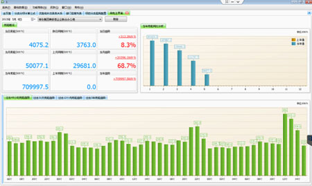 反映某分類能耗(例如電)當日及昨日同期、當月及上月同期、當年及上年同期的用能及對比,增長百分比及增加值;