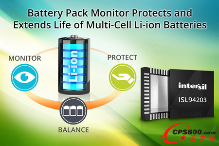 Intersil公司精密產(chǎn)品高級(jí)副總裁Philip Chesley表示:“Intersil高度集成的電池組檢測(cè)器使得設(shè)計(jì)鋰離子可充電電池管理系統(tǒng)變得很容易。我們的客戶看重功能豐富的ISL94203能夠延長(zhǎng)電池續(xù)航時(shí)間,并提供高精確性的電池單元平衡和對(duì)快速變化的負(fù)載進(jìn)行快速響應(yīng)。”