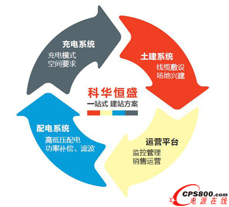 科華恒盛的充電系統解決方案包括專用充電網、智能停車場、商業運營充電網絡、新型綠色充電站等創新應用解決方案。