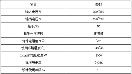 GGDZ智能照明穩(wěn)壓節(jié)電柜的技術參數(shù)如表1所示。節(jié)電柜機箱采用2mm厚冷軋鋼板,內(nèi)外表層噴塑,防護等級為IP54,溫升小于80K。此外,這一節(jié)電柜具有自動、手動旁路功能,一旦出現(xiàn)故障可以自動切換為電網(wǎng)供電,切換過程中不會產(chǎn)生瞬時滅燈現(xiàn),是實現(xiàn)城市道路照明的理想選擇。