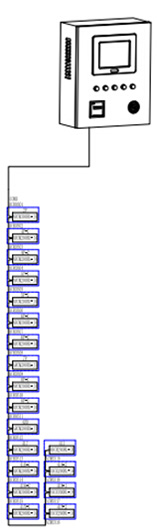 本項目通訊總線共接入一條通訊總線,總線在配電室手拉手串接后,接入壁掛式后臺,組成電氣火災系統的大動脈。箱體中漏電流互感器通過電流線接入漏電探測器,漏電探測器實時顯示漏電情況。以上所述組成一套信號穩定,精度可靠的電氣火災監測系統。本系統組網共分為三層: