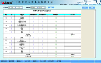 對用電量的管理以報表形式呈現,該報表可以呈現系統運行期間的任意時間段內的各回路用電,每個進線回路及它所帶的出線回路制作在一張表內,可方便查詢。如有多張表格,可在表頁最下端選擇切換。