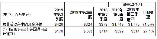 1) 2018年第三季度后推12個月包括2017年的調整金額,以反映將可轉換債券清算所支付的隱形利息重新分類,計入營業現金流對賬務的影響。