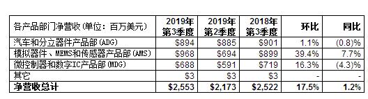 · “汽車和工業兩個傳統市場需求疲軟,符合預期,得益于在這兩個市場開展的客戶關系計劃和推出新產品的活動,第三季度凈營收環比增長17.5%,高于我們預期中位數15.3%。