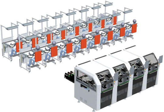 在OEM/EMS工廠內,Uflex可以取代在波峰焊接前,利用人手插入元件及連接器的工作,完全取代替由操作人員往PCB插件的手工流水線,或半自動裝配工作站。