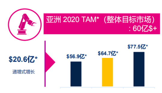 數(shù)據(jù)顯示,亞洲自動化應(yīng)用市場需求,2019至2023年復(fù)合增長率將達(dá)到8%,僅2020年亞洲TAM(整體目標(biāo)市場)規(guī)模高達(dá)64.7億美元。ST(意法半導(dǎo)體)亞太區(qū)功率分立和模擬產(chǎn)品部區(qū)域營銷和應(yīng)用副總裁Francesco MUGGERI(沐杰勵)認(rèn)為,新冠肺炎疫情并未讓市場需求增長完全放緩,而需求出現(xiàn)的差異化,依然讓市場保持強勁的增長勢頭。在某些應(yīng)用中,市場需求正在加速增長,其中智能化(不僅人工智能)以及嵌入式處理,這些市場需求對ST至關(guān)重要。此外,機器人技術(shù)創(chuàng)新、5G基礎(chǔ)設(shè)施建設(shè)等,這些在其中都發(fā)揮著極大地推動作用。