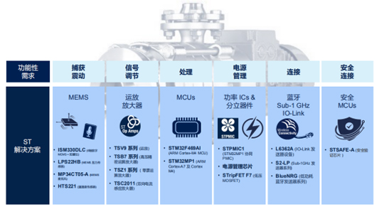 不僅如此,ST可以提供一站式的產(chǎn)品。針對工業(yè)電機監(jiān)測的各項功能需求,比如振動捕捉,信號調(diào)節(jié),處理,電源管理,連接,安全連接等,ST建立了完善的解決方案,如在振動監(jiān)測方面,對于信號調(diào)理,ST提供所有的模擬設(shè)備和接口。數(shù)據(jù)處理方面,ST有STM32微控制器。為了實現(xiàn)安全的電源管理,ST提供電源管理芯片和分立器件,例如STPMIC芯片,以及分立MOSFET開關(guān)管。對于設(shè)備連接,ST有電力線和無線通信產(chǎn)品,也有安全連接技術(shù)。