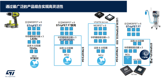 據(jù)悉,ST已有三種主要套件上市,它們可用于醫(yī)療設(shè)備、伺服模塊和電動工具。以電動園林工具為例,ST的STSPIN32F0能夠驅(qū)動最高36V的電池供電設(shè)備。此外,ST還有36V-60V的高壓驅(qū)動解決方案。不僅如此,ST還提供STSPIN芯片和低壓電機驅(qū)動板,以及STSPIN32系列系統(tǒng)芯片。