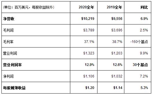 ·“2020年下半年市場需求超預期,全年收入增長6.9%,達到102.2億美元,營業利潤率為12.9%。