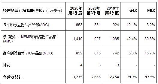 ·“如同我們在2021年1月8日對外公布的那樣,2020年第四季度凈營收環比提高21.3%,比我們預期最高點高出580個基點。我們個人電子產品執行的計劃,以及不斷增長的需求,尤其是汽車產品和微控制器的需求,是取得這一業績的主要因素。第四季度毛利率比公司預測的中位數高30個基點。第四季度的營業利潤率環比增長800個基點,達到20.3%,自由現金流增至5.12億美元。