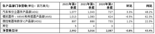 意法半導體第二季度實現凈營收29.9億美元,毛利率40.5%,營業利潤率16.3%,凈利潤為4.12億美元,每股攤薄收益0.44美元。
