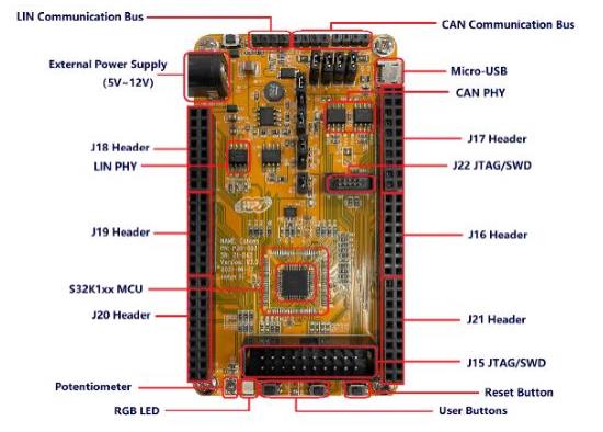 Ÿ外設(shè)及接口資源涵蓋了S32K1xx芯片的大部分功能,使用此評(píng)估板可以滿足開發(fā)人員的基本應(yīng)用設(shè)計(jì)需求,可在一定程度上加速前期的研發(fā)進(jìn)度。