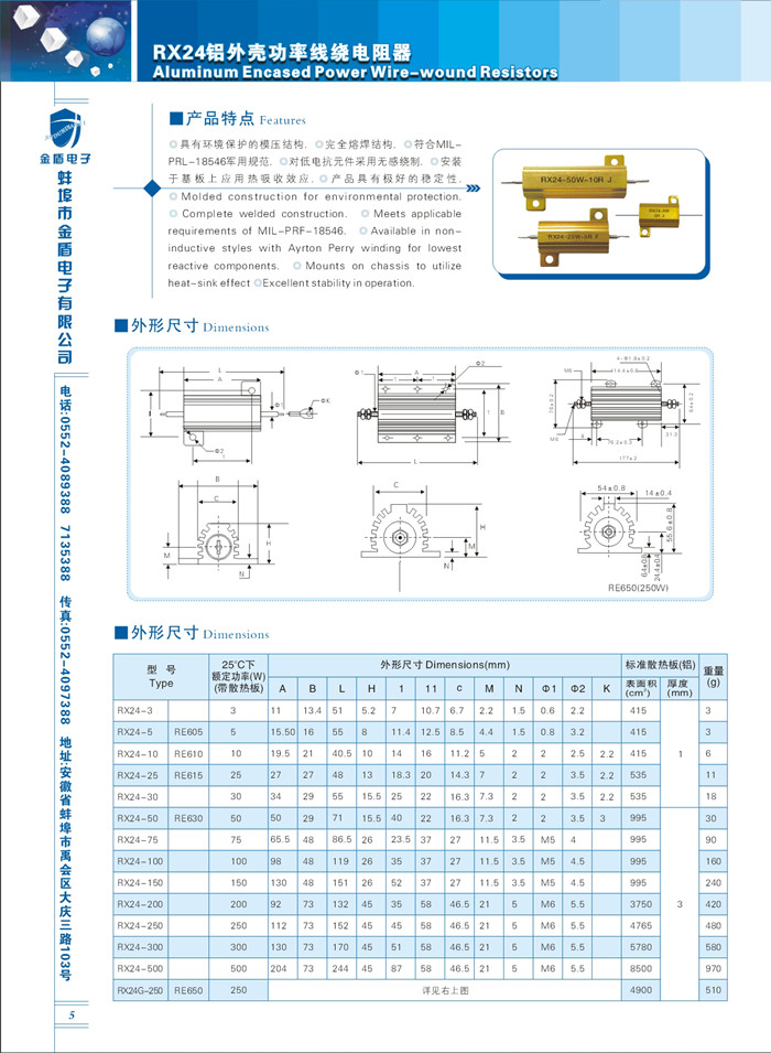 供應(yīng)RX24鋁外殼功率線繞電阻,金盾直銷RX24模壓線繞電阻器
