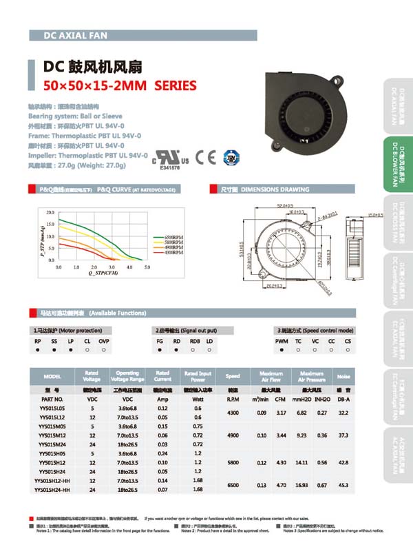 DC鼓風機風扇YY5015-2產品詳情