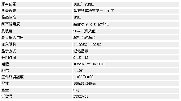 JH3320頻率計(jì)是對(duì)10Hz~25MHz頻率進(jìn)行測(cè)量的一種便攜式儀器,七位數(shù)字顯示,主機(jī)集成化程度高,穩(wěn)定、可靠、省電、輕便。