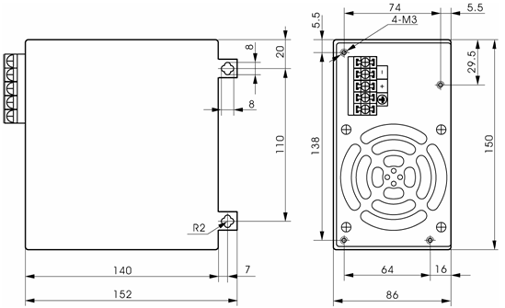 安裝尺寸(150L×140W×86Hmm):