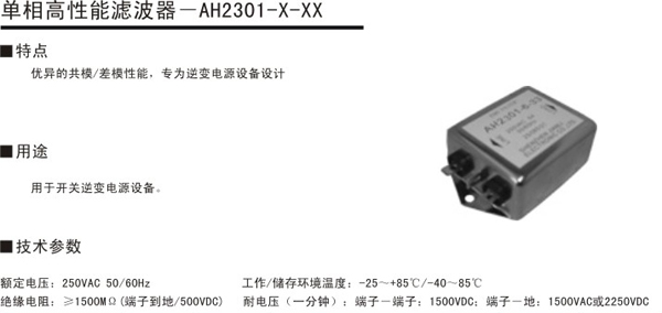 AH2301-X-XX單相高性能濾波器產(chǎn)品詳情