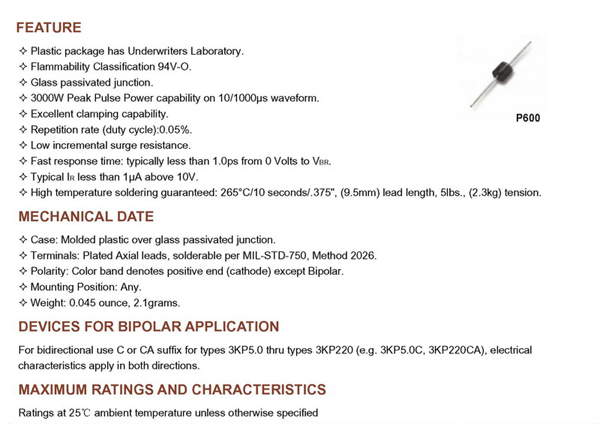 3KP SERIES 引線型瞬態抑制二極管產品詳情