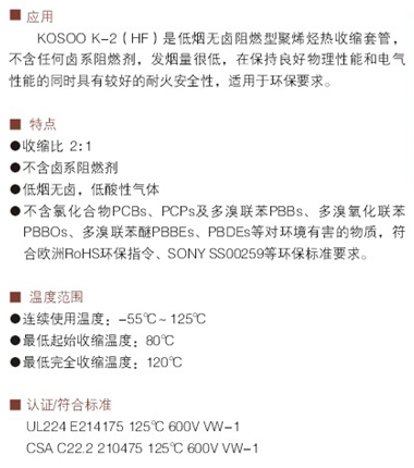 (K-2)(HF)低煙無鹵阻燃聚烯烴熱縮管產(chǎn)品詳情