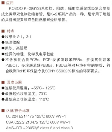 (K-2)(GYS)黃綠雙色熱縮管產品詳情