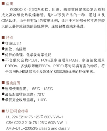 (K-2)(3X)高收縮比阻燃聚烯烴熱縮管產(chǎn)品詳情