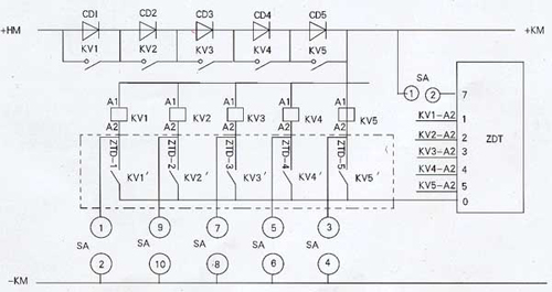 ZDT-1型直流自動調壓裝置是將硅堆模塊、直流接觸器、電壓自動檢測模板及中間繼電器組合而成。該裝置根據電壓自動檢測板對控制母線電壓巡檢的信息,自動送出相應的控制信號。驅動執行接觸器,通過執行接觸器的“分”或“合”,來達到調壓硅堆模塊的“ 投入”與“退出”,從而改變控制母線電壓值,使控制母線電壓保持在額定值的范圍內。