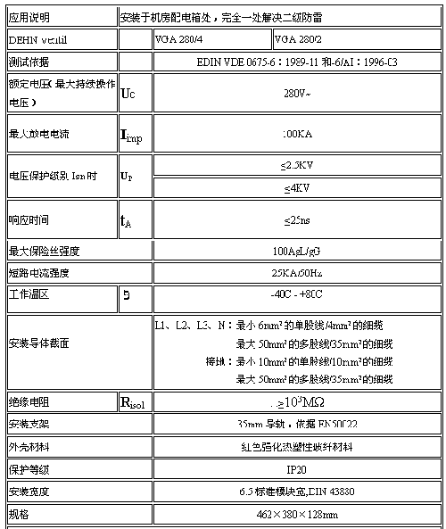 DEHN VGA280/4P-BC100復(fù)合型BC級(jí)電源防雷器