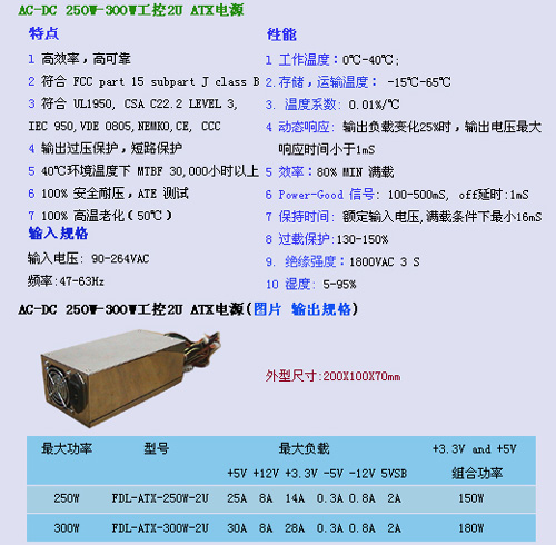 AC-DC 250W-300W工控2U ATX電源產(chǎn)品詳情