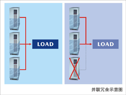 例如:計算機負載為20KVA,就可以使用3臺UPS實現(xiàn)并聯(lián)冗余,如果其中一臺UPS需移出或關(guān)機拆除。其它兩臺UPS會立即支持所有的負載。因此,無論哪一臺UPS出現(xiàn)故障,都會因為您妥善的并聯(lián)冗余的規(guī)劃,而使得貴重的設(shè)備獲得了不間斷的高品質(zhì)電力供應。