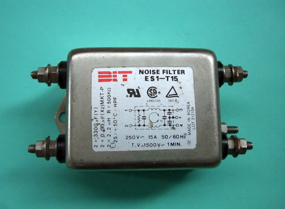 型號:ES1-T15,技術參數:250V 15A 50/60HZ,TV 1500VAC 1MIN 40℃,L:2×2.2mH,C: 2×3300pF, R:500KΩ 產地:韓國